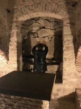 Un guide, avec ses grosses clefs, nous ouvrira le sous-sol pour découvrir les salles cachées : la crypte des gros piliers, celle de Notre Dame des 30 cierges...et le trésor, la partie la plus ancienne du Mont : la chapelle Notre Dame sous terre, la 1ère construction carolingienne du Xème siècle ! Cette chapelle nous réserve une surprise...